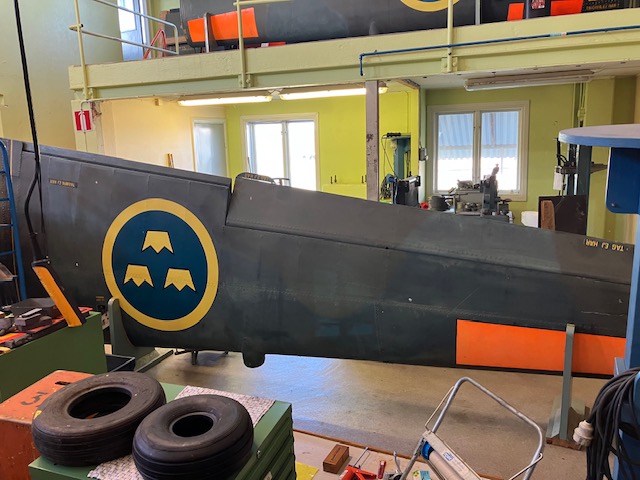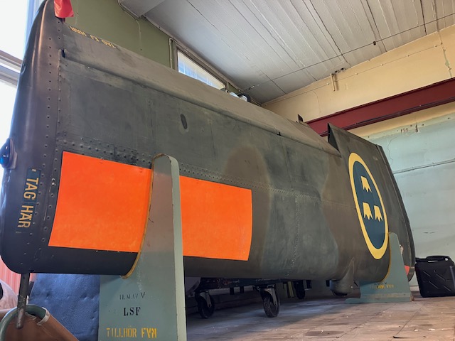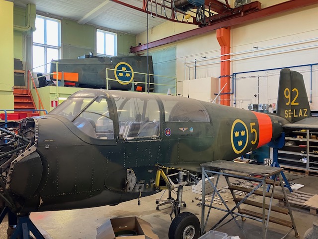 The aircraft is stored at Linköping Saab Airport (ESSL) in Sweden.