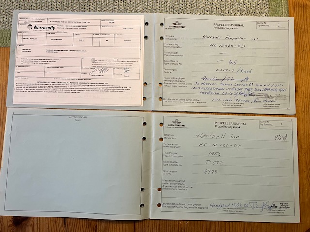- s/n 8389. Hartzell HC-12×20-8C. Total time: 5545 h. Time since overhaul 725 h. Last used on aircraft SE-LAZ a Saab 91C Safir.