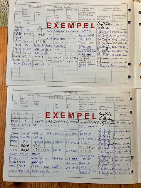 - s/n 730. Total time: 4412 h. Time since overhaul: 415 h. Has been stored in a Air Force storage container and never used on civilian Saab Safir. Last entry in the log book was magnetic particles in the oil. Complete military engine documentation is available.