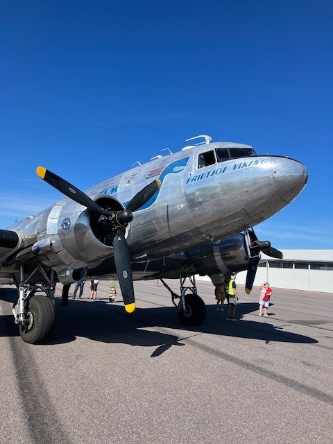 The only airworthy Swedish DC-3 ”Daisy” visited Saab airport and was welcomed by the flying club members. After some difficulties to taxi through the gates to the apron (the center line of the taxiway is not the center line through the gate) they succeded in pwrforming a local flight above Linköping as well as transporting back a nomber of passangers that visited the Air Force Museum during the day.