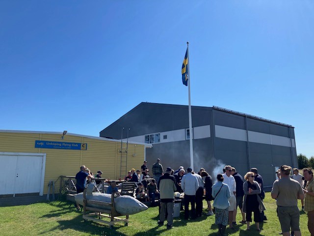 Saturday ended with a Hangar Party with about 40 guests. On the meny was a mixed barbecue and coffe/cake for desert.