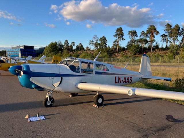 The most interesting (and maybe oldest flying) Safir attending the meeting was LN-AAS (previously SE-BNL/SE-BNZ). This aircraft was manufactured in 1948 as a prototype 91B Safir, but with a 91A Gipsy Major Engine. The aircraft was used as a test aircraft at Saab in Linköping and was during a brief period in 1957 owned by Linköping Flying Club. So to speak it visited the old home airfield! It was in 1966 converted to a 91D Safir. In 2003 it was sold to Norway and registred as LN-AAS.